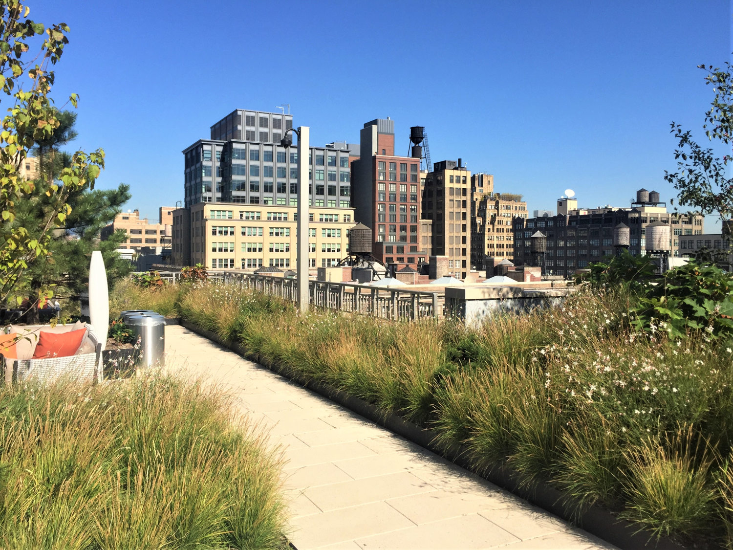 With its eye-popping views of NYC and the Hudson River, the building's rooftop amenity terrace provides additional outdoor space escapes. The terrace's topographic and spatially defining landscape has created places for small private gatherings and significant events. Companion plant communities create a visually cohesive landscape character within which sunbathing, grilling, outdoor dining, and entertainment occur. The terrace's undulating indigenous alpine wildflower meadow borders garden path links and envelops each social destination.