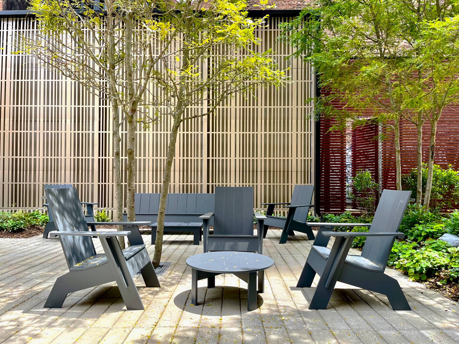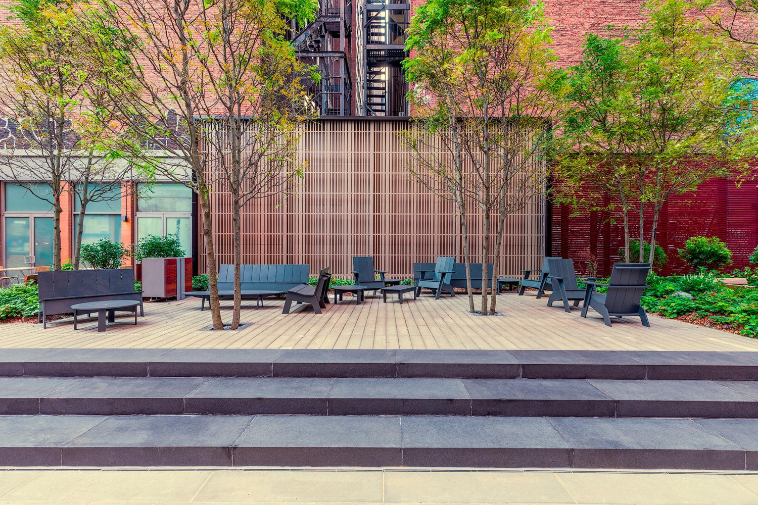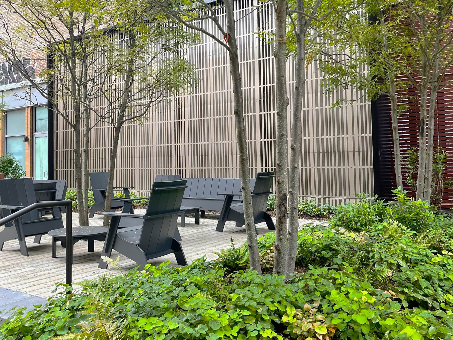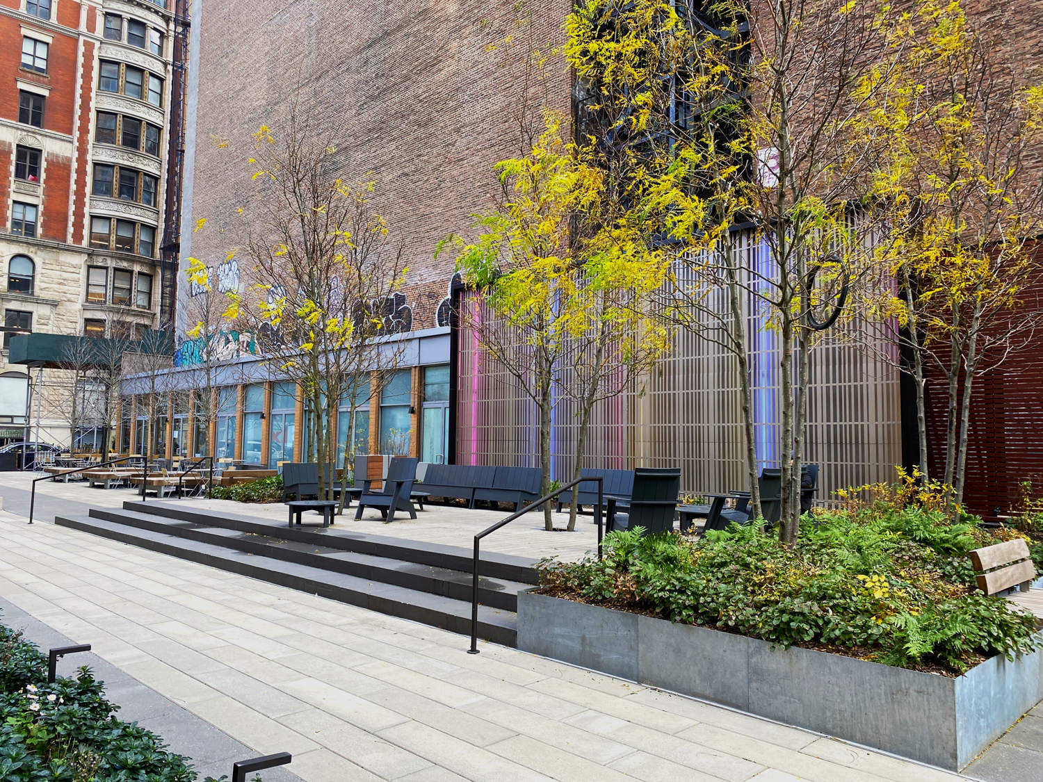 After nine years, the Chelsea Capitol residential building’s public plaza had deteriorated. As part of a comprehensive building renovation, the ground level lobby and main entrance design were reoriented to connect with its “rear yard” amenity space. Building infrastructure improvements required the plaza’s complete reconstruction. Improvements in public safety qualities were paramount. “Defensible space” strategies were employed to ensure uninterrupted visibility from the building’s interior and from within the plaza’s open space. The redesign presented an opportunity to reimagine the conventional paved urban plaza prototype. Alternatively, an approach which uses a contiguous landscape as the plaza’s primary spatially organizing mechanism was pursued. The site’s shady environment inspired the concept of inserting an indigenous woodland landscape. Working with regional plant communities as a spatial framework, the plaza’s primary function as a neighborhood public gathering space, activity and meeting places were created by craving-out and shaping them from within the plaza’s landscape context. A sequence of resting and communal “garden-pods” were positioned along the plaza’s main through-block meandering path. Multi-sensual experiences gained by moving through a woodland garden are intended to slow foot traffic and inspire calming pauses to observe the variety of the plantings’ seasonal attributes. The biomass of the plaza’s tree canopies softens the surrounding buildings’ presence while improving human comfort with their cooling and shading effects. Perimeter custom designed fences, accented with espaliered vine-covered mesh panels, provide architectural spatial unity, and mask the unsightly mix of abutting buildings. The blending of the ground plane and vertical companion plant communities generate a memorable plaza identity as a nature-filled destination and safe community haven for building tenants, visitors, and neighborhood residents.