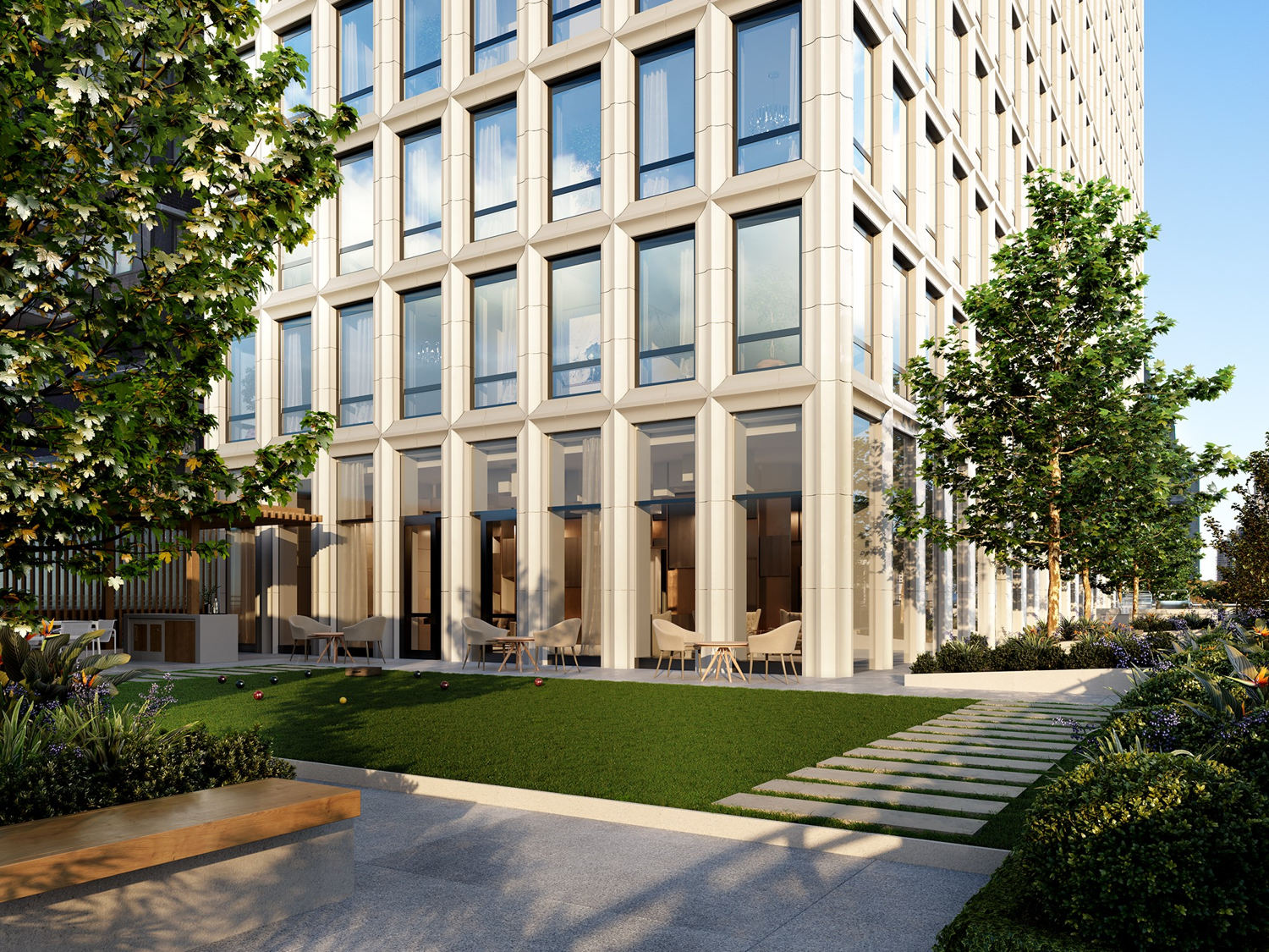 A medley of communal and social gathering garden rooms, adorned with high-performing plantings with diverse seasonal interests, emerge as organic, natural-world erosions from the terrace’s level stone floor.The versatility of the terrace’s landscape design welcomes residents with a calming and peaceful sanctuary resource as well as places for entertaining and passive recreation – all within the privacy of their urban home.