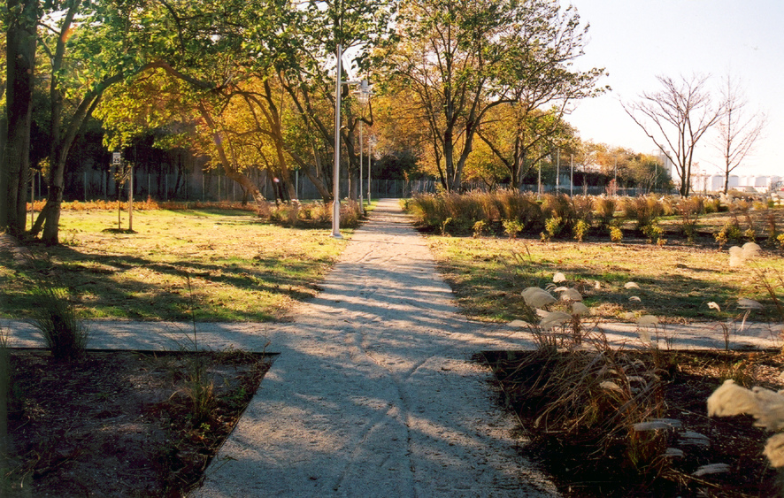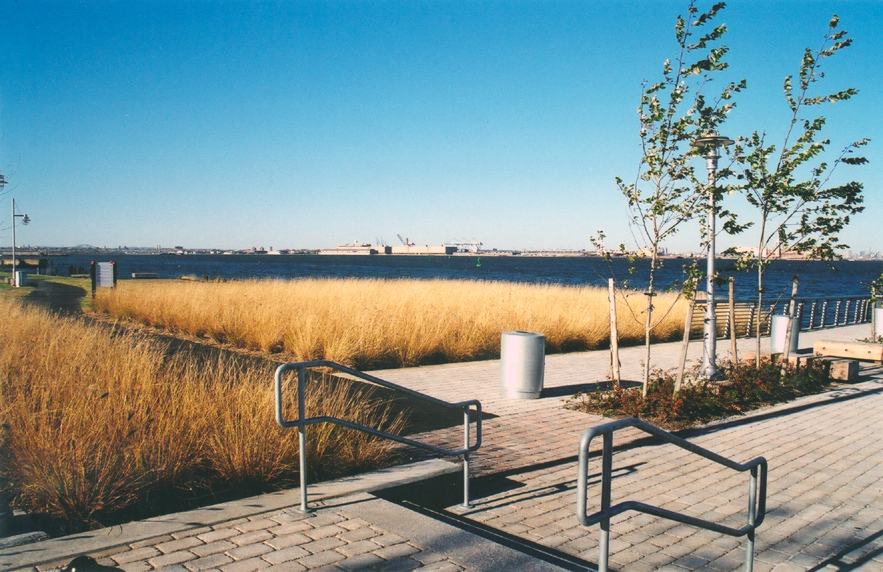This one-mile-long waterfront walkway and esplanade is set within a restored coastal landscape—formerly an industrial railroad yard. Soil remediation, selective preservation of existing native vegetation, a landscape-based integrated stormwater management strategy, shoreline stabilization, and a native coastal planting restoration scheme were integral to establishing a comprehensive vision for this waterfront park. The landscape design emerged as a fundamental component to solving stormwater management and soil remediation requirements. Local marine ecology's natural purifying and absorption performative qualities were tapped as the fundamental plant community resource to renew and regenerate the site’s original natural conditions. Large contiguous and vegetated zones were dedicated early in the design process and labeled the project’s “green infrastructure.” By establishing the project’s landscape development as a critical component to solving the site’s environmental and engineering requirements, the scope and site coverage of planting systems created a proportionally scaled landscape that visually registered and anchored the ballpark structure to its dynamic waterfront landscape setting.