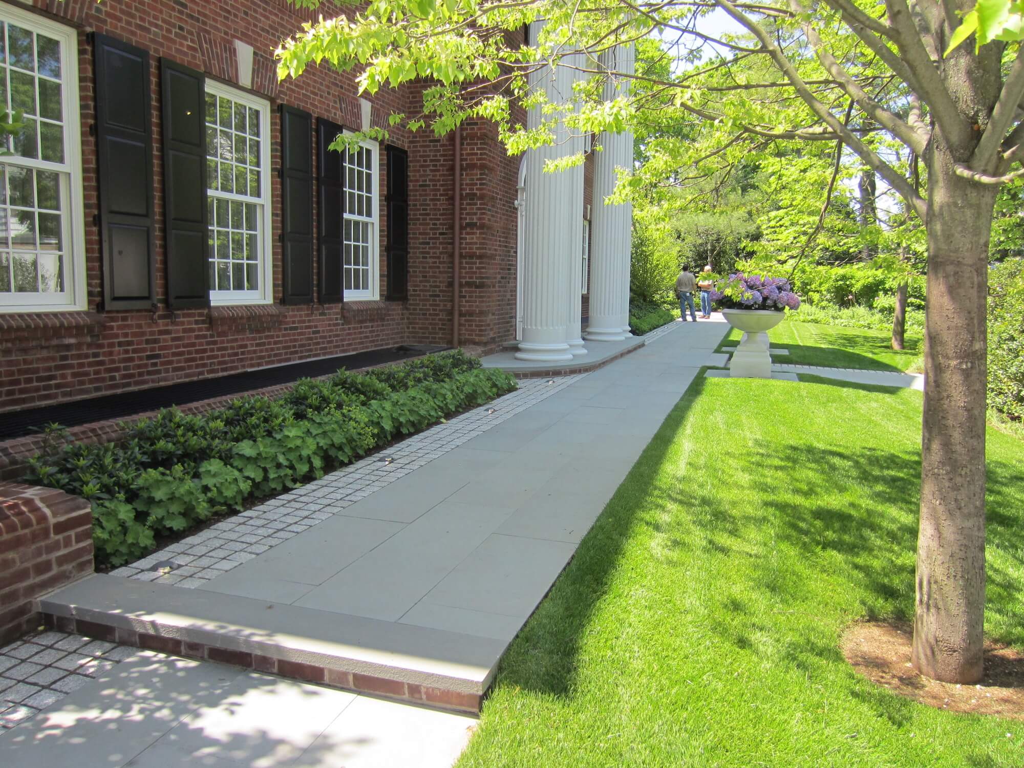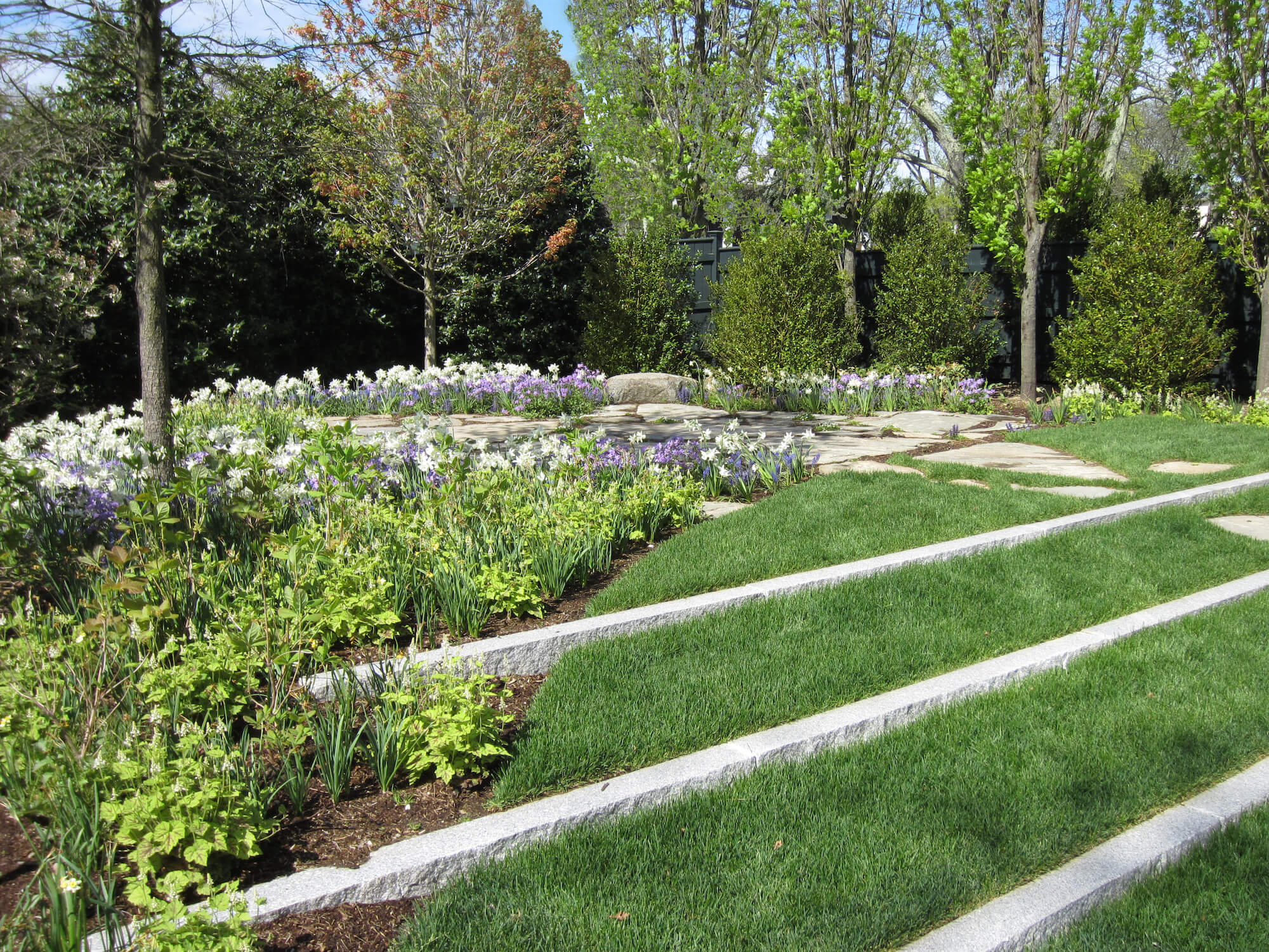 Seasonal bulbs, ground covers, and native shrubs provide dynamic interest while reinforcing the estate’s structure. Brick and stone masonry elements, terraces, and lawns extend interior living into the garden, dissolving boundaries between architecture and landscape.